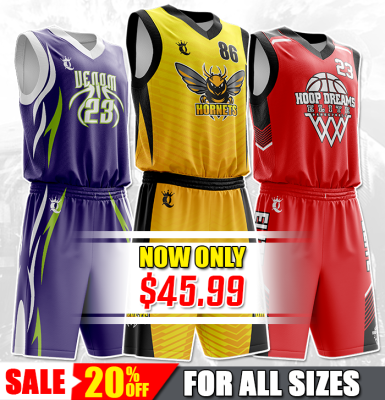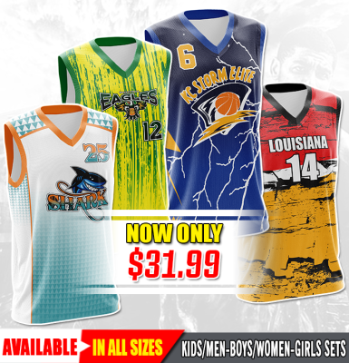 Many different custom basketball uniforms styles for adult, youth and kids.